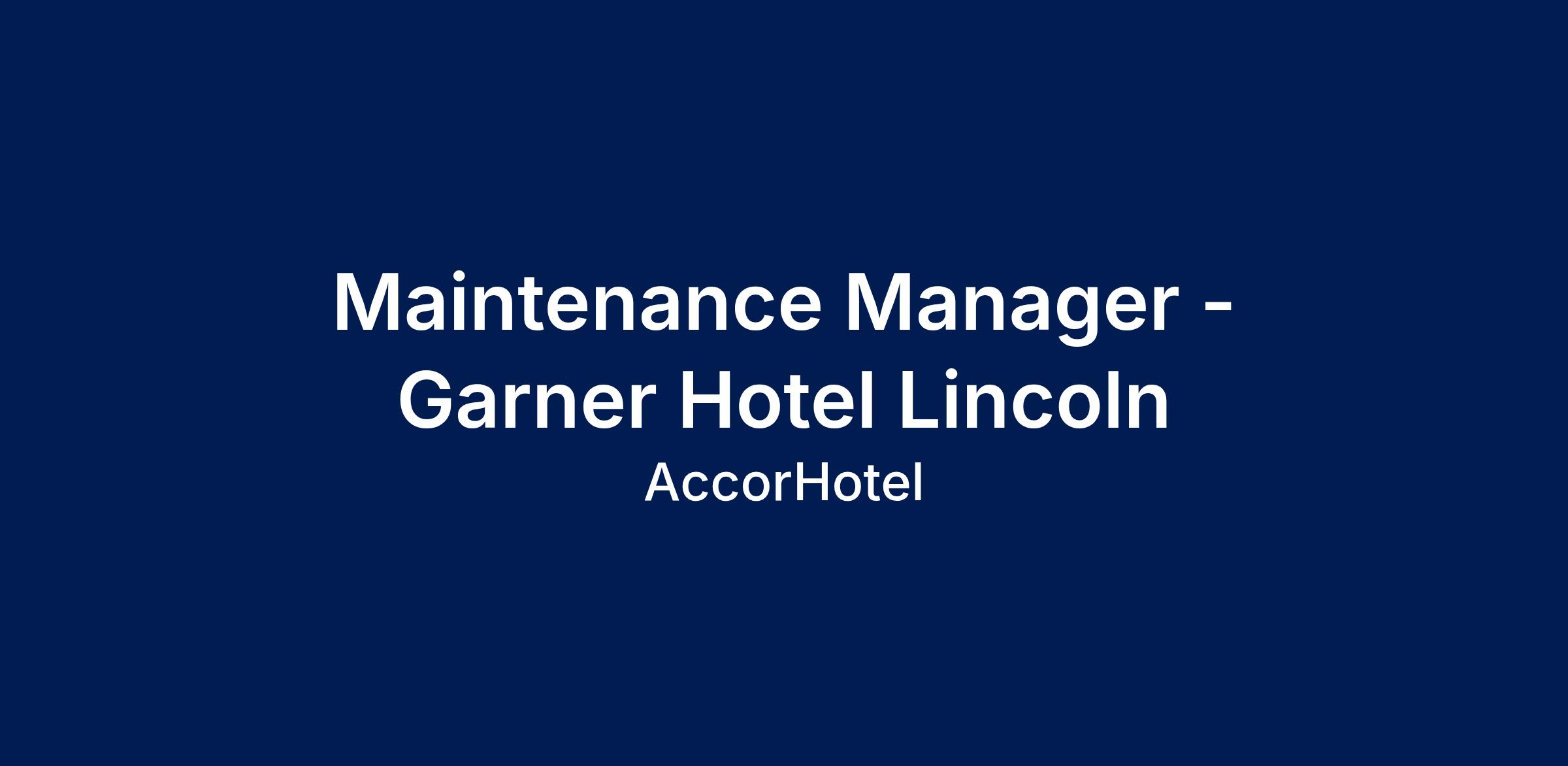 At the newly rebranded Garner Hotel Lincoln we are looking for an experienced Maintenance Manager to join our Management Team.