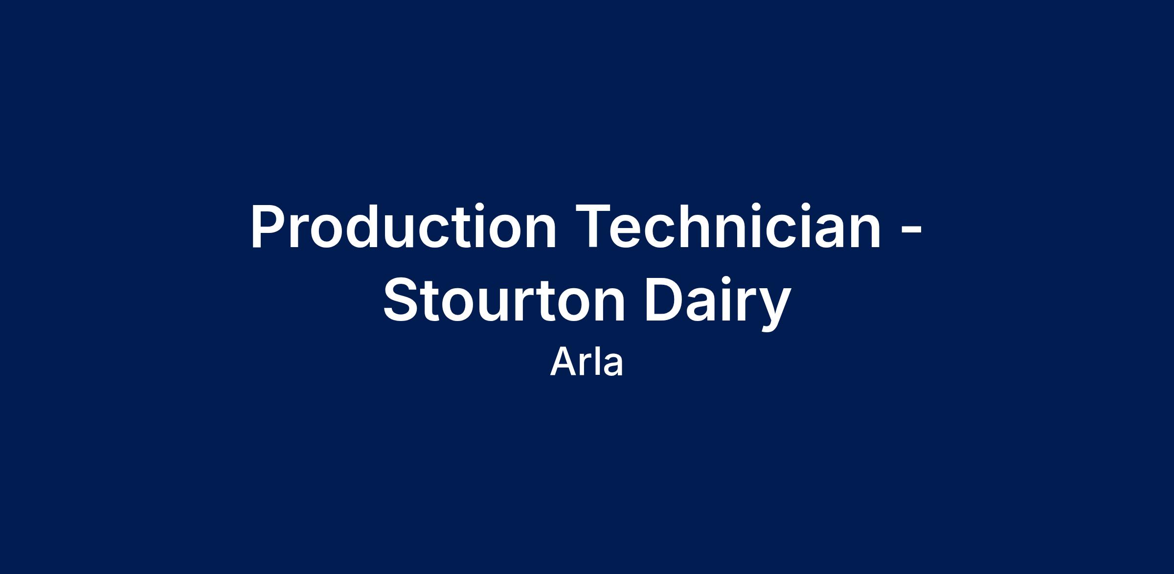 Arla Foods Stourton have an exciting opportunity for a Production Technican . The dairy, located in south Leeds, is one of the largest in the UK with the capacity to produce 750million litres of milk per year. Arla is the UK’s largest dairy, farmer owned and the creator of household favourite brands such as Cravendale, Anchor, Lurpak & Castello plus many many more.