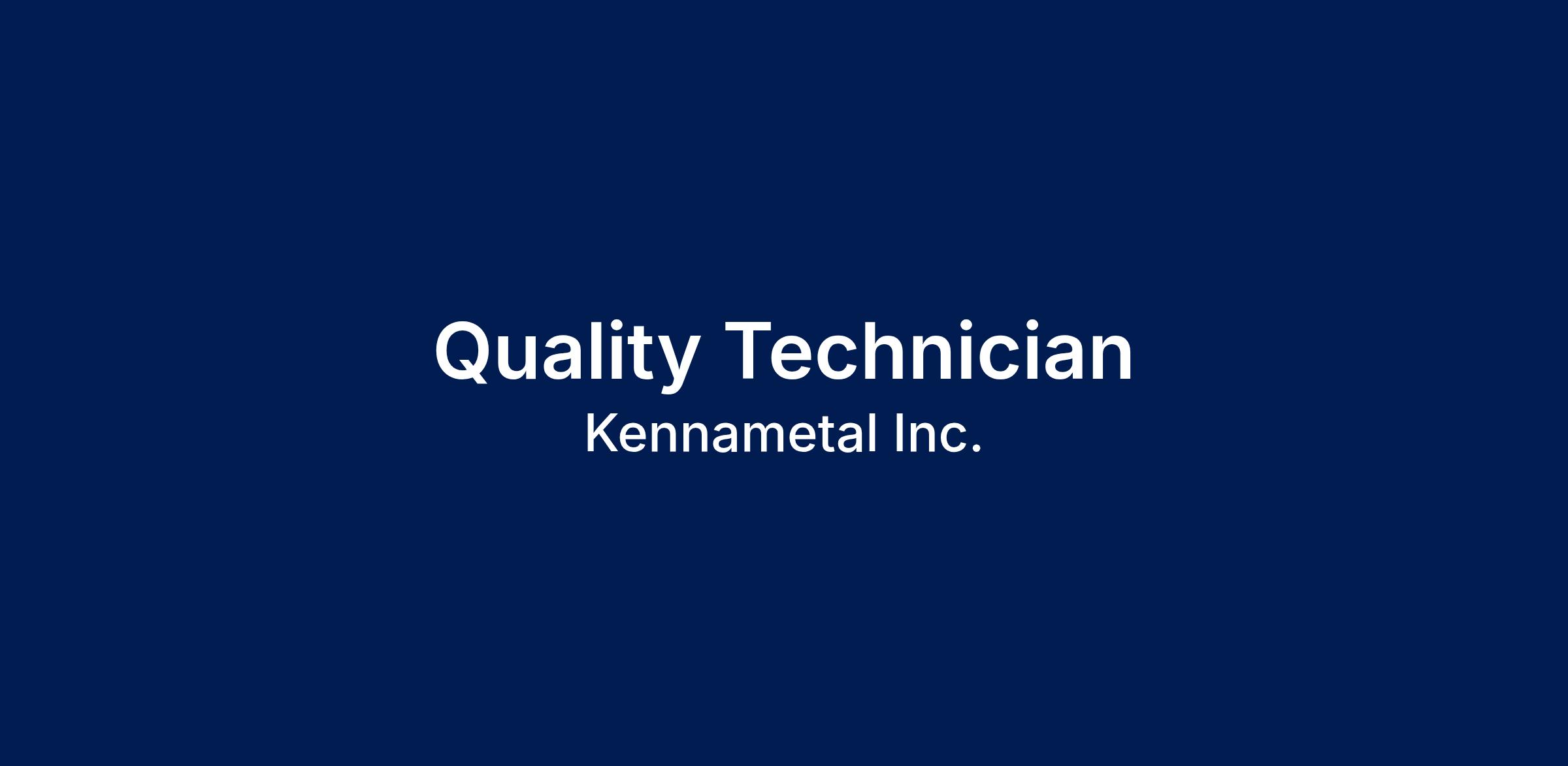 The purpose of the Quality Laboratory Technician is to protect customers from non-quality by ensuring that products and practices comply with applicable regulations, customer requirements and Kennametal standards, and promoting a culture of prevention and anticipation.