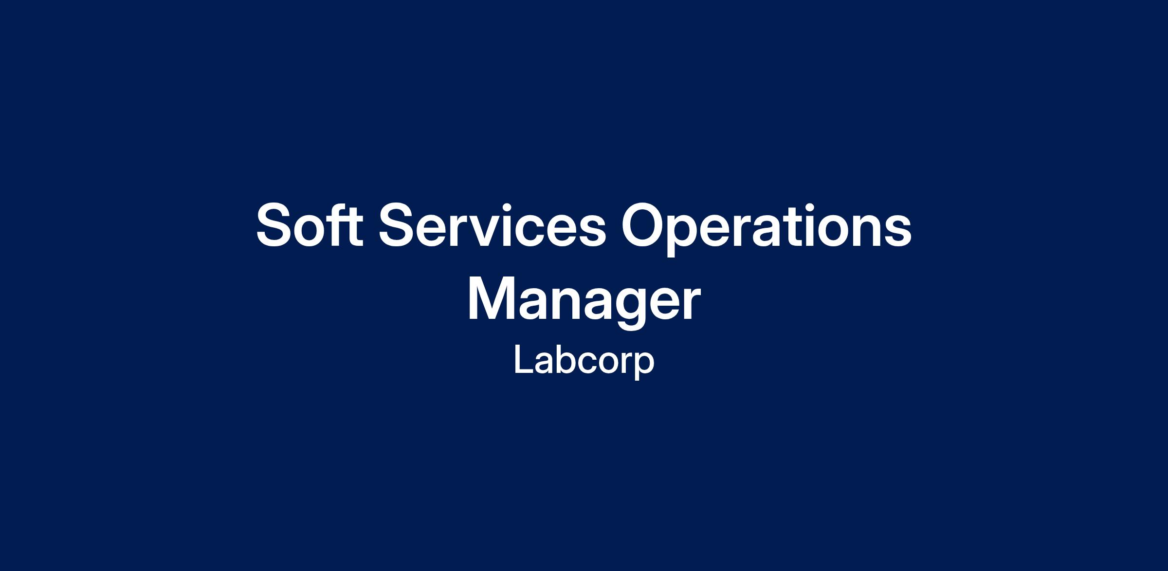 As a Soft Services Operations Manager at Labcorp you will: